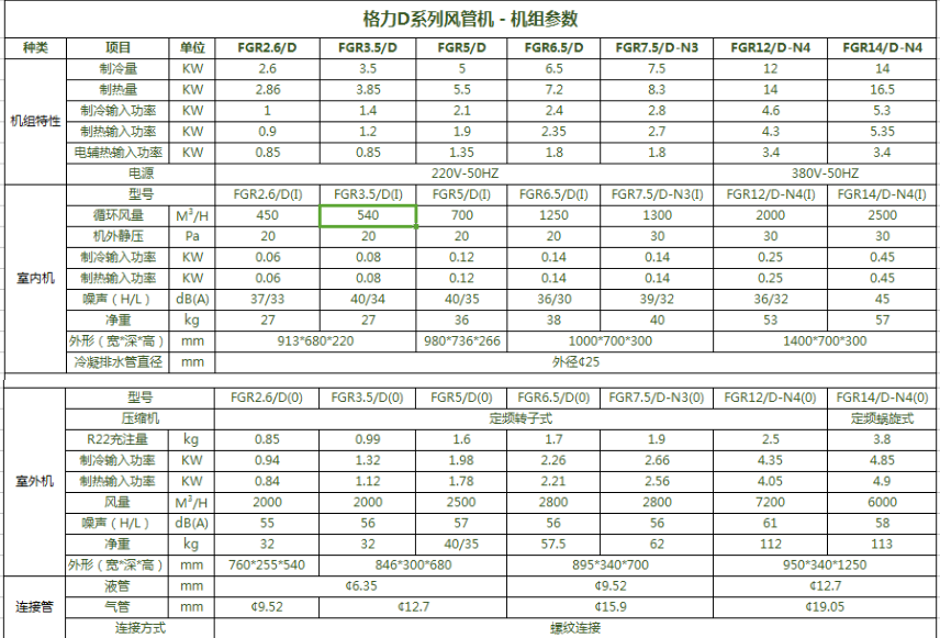 以下(xià)為格力黑去D系列風管機參數,供參考: